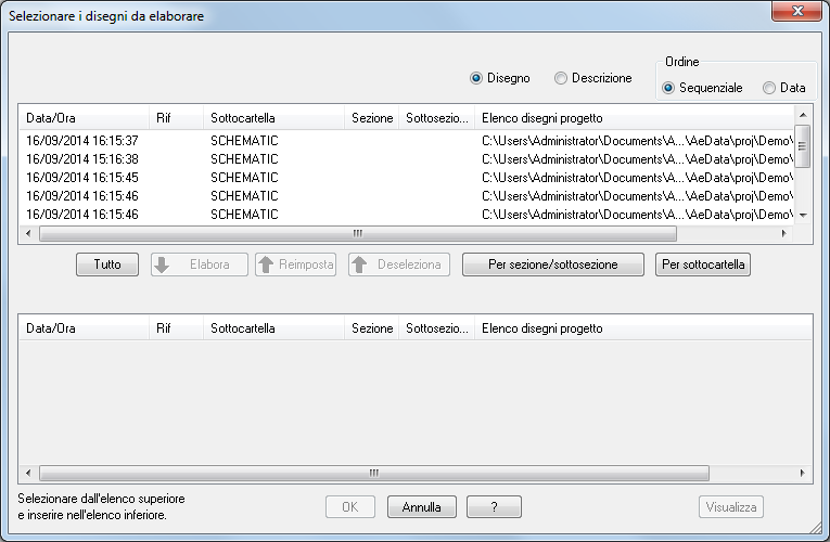 Dopo aver selezionato l'opzione Stampa progetto, è possibile selezionare i disegni del progetto che si desidera stampare.