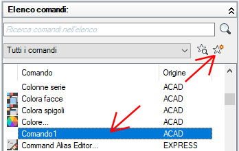L'elenco viene filtrato in modo da visualizzare solo i comandi definiti dall'utente che sono stati aggiunti ai file di personalizzazione caricati.
