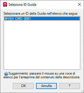 Di seguito viene riportato un esempio di descrizione comando estesa creata per l'utilizzo in un prodotto basato su AutoCAD 2009.
