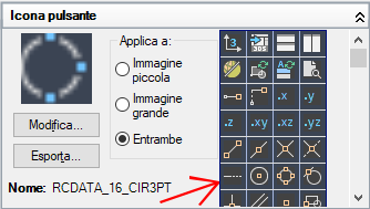 Nel riquadro Icona pulsante, in Applica a, selezionare una delle tre opzioni di assegnazione dell'immagine: Immagine piccola, Immagine grande o Entrambe.