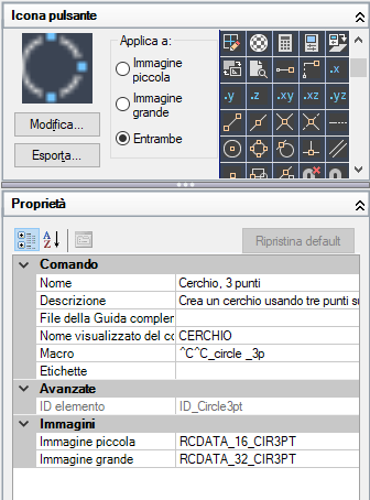 Selezionare un'immagine dall'elenco. Alla proprietà Immagine piccola, Immagine grande o ad entrambe le proprietà del comando selezionato verrà assegnato automaticamente il nome.