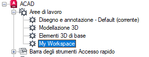 Nella scheda Personalizza, nel riquadro Personalizzazioni in <nome file>, espandere Aree di lavoro e selezionare l'area di lavoro contenente la tavolozza che si desidera modificare.