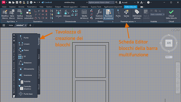 Si apre l'ambiente dell'Editor blocchi e viene visualizzata la scheda della barra multifunzione Editor blocchi.