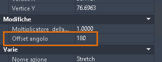 Si desidera che gli oggetti vengano stirati nella direzione opposta rispetto agli oggetti sul lato destro, ad esempio quando il grip viene trascinato a destra, gli oggetti vengono stirati verso sinistra. A tale scopo, modificare la proprietà Offset angolo dell'azione come mostrato.