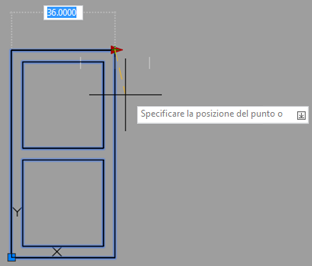 In un disegno vuoto, disegnare un rettangolo di 36" x 72" per rappresentare la finestra. Disegnare i rettangoli interni come mostrato. Posizionare l'angolo inferiore sinistro della finestra a 0,0. Questa posizione verrà utilizzata come punto di inserimento base del blocco.