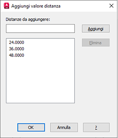 Aggiungere 24 e 48 nella finestra di dialogo Aggiungi valore distanza e fare clic su OK. 36 viene aggiunto automaticamente, poiché si tratta della lunghezza del parametro lineare.