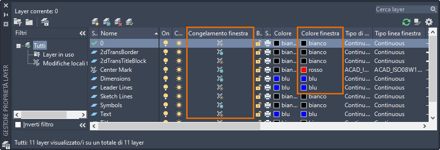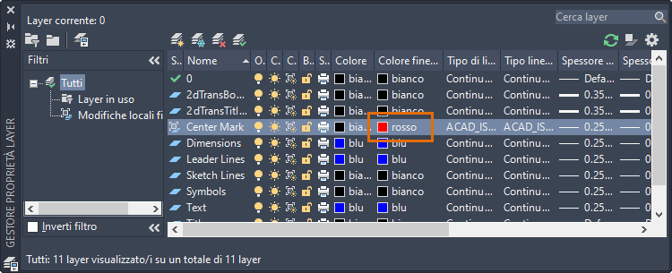Immettere il comando LAYER per aprire il Gestore proprietà layer. Trova