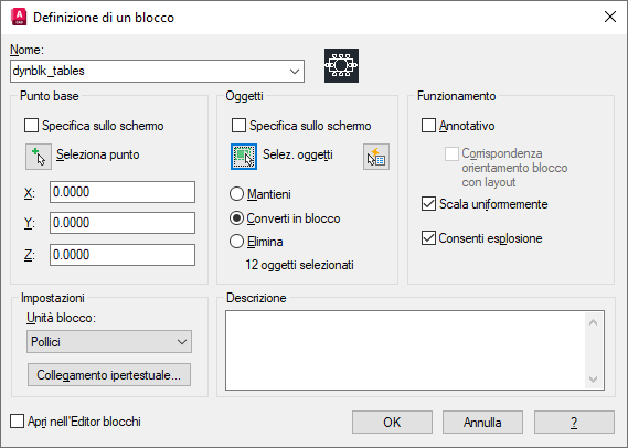 Con gli stati di visibilità, è possibile creare un blocco con un qualsiasi numero di configurazioni differenti. In questo esempio verrà creato un blocco che può rappresentare un tavolo rotondo con 4 sedie o un tavolo rettangolare con 8 sedie.