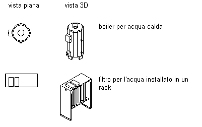 Nel programma è disponibile un catalogo di parti idrauliche contenente centinaia di parti in migliaia di dimensioni. I tipi di parte includono attrezzatura idraulica, ad esempio pompe e caldaie, nonché apparecchi idraulici quali scarichi, WC e lavelli. Di seguito sono visualizzati alcuni esempi.