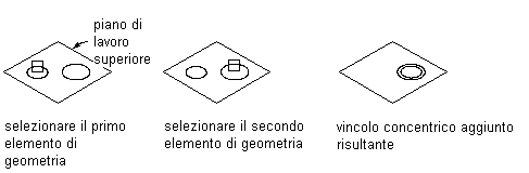 È possibile definire il vincolo coincidente tra un punto e qualsiasi elemento di geometria. Fissa insieme due punti, inclusi i punti centrali; in pratica il punto viene collocato sull'elemento di geometria.
