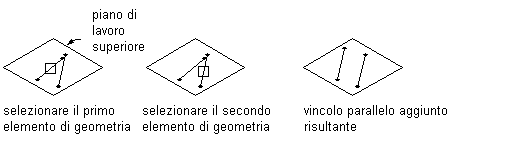 È possibile definire il vincolo tra coppie di geometria con una direzione, ad esempio linee. Consente di impostare due o più linee come parallele le une alle altre.
