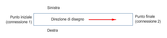 La giustificazione si basa sulla direzione di disegno dal connettore 1 (punto iniziale) al connettore 2 (punto finale), come indicato: