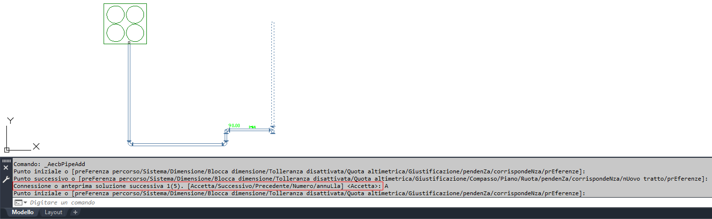 Suggerimento: Se si sta collegando un oggetto con una dimensione tubo diversa o una preferenza percorso diversa, verrà richiesto di scegliere una parte da connettere al secondo oggetto.