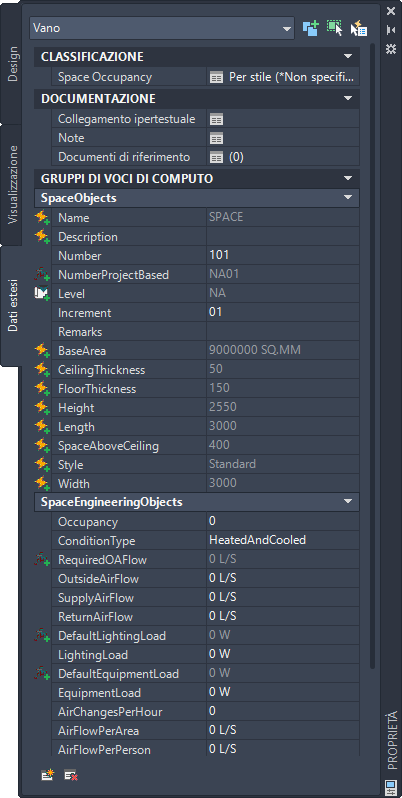 Gli stili dei dati di ingegneria possono essere applicati ai vani e alle zone del disegno.