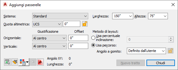 È possibile utilizzare la finestra di dialogo Aggiungi passerelle per le impostazioni delle passerelle e la finestra di dialogo Aggiungi raccordi passerella per i raccordi.