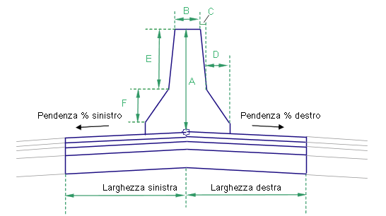 | Direzione di pendenza banchina | Specifica se la pendenza della banchina è nella direzione del colmo stradale o in quella opposta. |