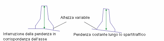 Se lo spartitraffico è in sopraelevazione con pendenza costante lungo tutto lo spartitraffico, la sommità della barriera viene inclinata in modo da corrispondere alla pendenza dello spartitraffico. In caso contrario la sommità della barriera resta orizzontale. In tutti i casi, l'altezza della barriera (Quota A) viene mantenuta costante in corrispondenza dell'asse della barriera.