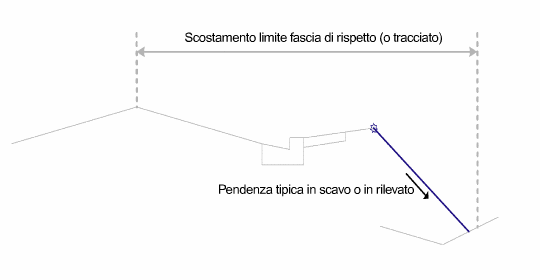 La pendenza tipica della scarpata fa sì che il punto di aggancio rientri nel limite di scostamento specificato dal valore numerico o dalla posizione del tracciato.