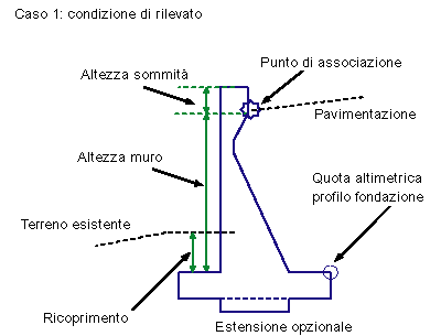 | Ricoprimento fondazione | Lo spessore di ricoprimento dalla parte superiore della fondazione alla linea di finitura sul lato posteriore del muro in rilevato oppure all'aggancio se in scavo. | Numerico |