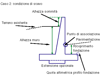 | Altezza sommità | La distanza tra la parte superiore del muro e l'aggancio in rilevato oppure il nuovo aggancio in scavo. | Numerico |