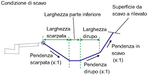 | Pendenza in scavo | Pendenza collegamento di scarpata in materiale non roccioso | Numerico, positivo | 2 ( : 1) |
