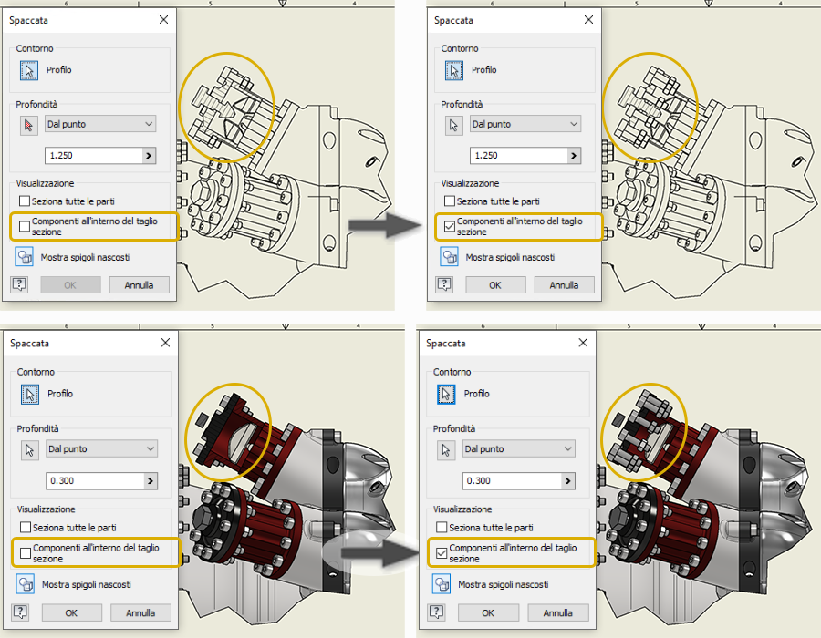 Miglioramento del flusso di lavoro: durante la creazione di una vista spaccata, se non esiste uno schizzo che definisce il contorno della vista spaccata, viene creato e attivato uno schizzo ed è possibile iniziare ad aggiungere la geometria.