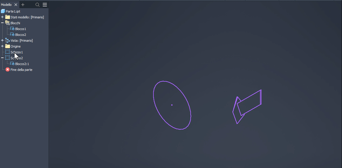 Tenere presente che la selezione tramite riquadro di selezione può determinare la proiezione duplicata delle geometrie dello schizzo, che potrebbe causare problemi nel processo di progettazione. Si consiglia di disattivare la visibilità dello schizzo o del corpo per evitare la proiezione imprevista.