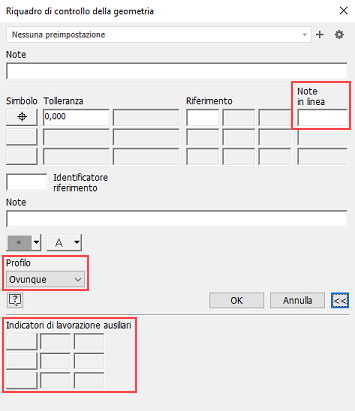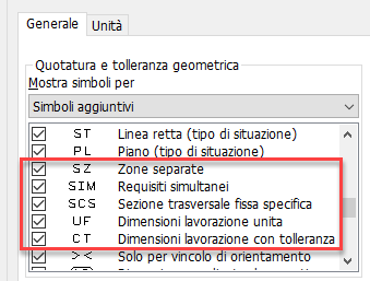 Sono stati aggiunti identificatori aggiuntivi alla finestra di dialogo Stile riquadro di controllo della geometria per soddisfare gli standard ISO 5458, ISO 14405-1:2016 e ISO 1101.