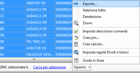 Esportare le informazioni sulle proprietà dalla Tabella dati.