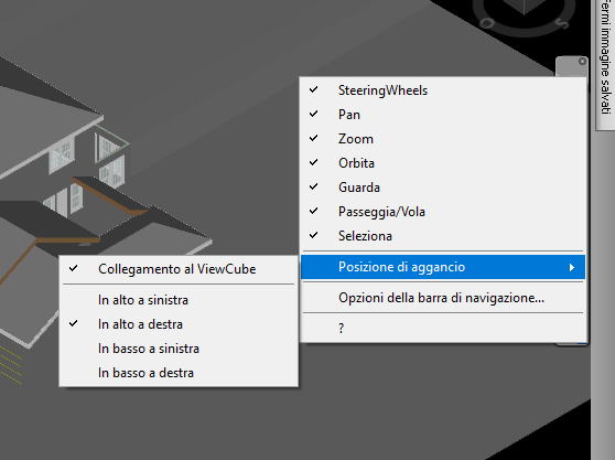 La barra di navigazione consente di accedere agli strumenti associati alla navigazione interattiva e all'orientamento nel modello, quali Autodesk® ViewCube®, SteeringWheels® e 3Dconnexion® 3D mouse.