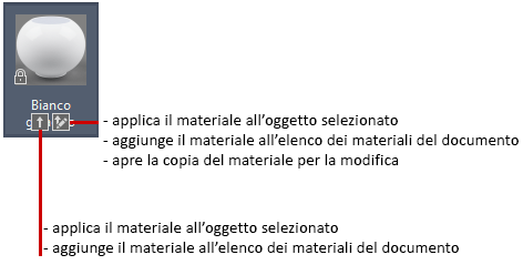 Nel momento della creazione o modifica di un materiale, nella scheda Materiali della finestra Autodesk Rendering, è possibile:
