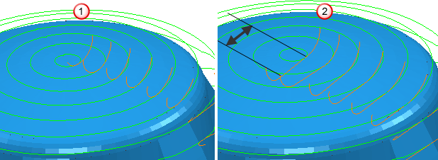 Overlap distance (tool diameter units) — Enter the distance by which a lead-out move can overlap a closed toolpath segment.