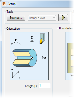 In PartMaker/Mill, you can use the Turning Machining Position dialog to change the orientation of the stock for turning operations when you are using a Rotary 5 Axis table.