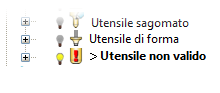 Gli utensili non validi sono contrassegnati da un punto esclamativo