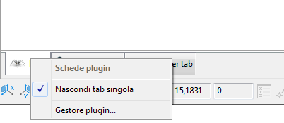 Nella finestra orizzontale plugin, fare clic con il tasto destro del mouse su una scheda plugin per visualizzare il menu contestuale della finestra plugin.