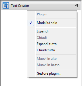 Nella finestra verticale plugin, fare clic con il tasto destro del mouse sull'intestazione di un plugin per visualizzare il menu contestuale della finestra plugin.