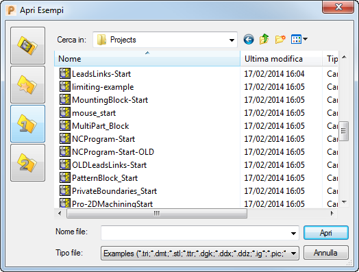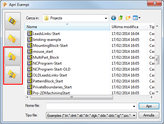 Questo esempio mostra come personalizzare il pulsante della directory definita dall'utente sulla finestra di dialogo Apri Esempi.