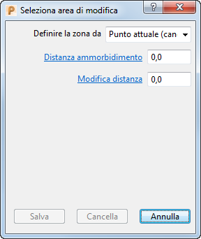 La finestra di dialogo Seleziona area di modifica permette di specificare l'area di un percorso utensile che si vuole modificare.