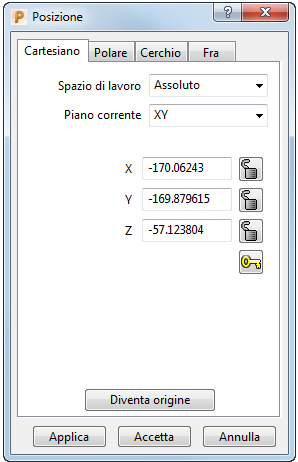 In questo modo viene visualizzata la finestra di dialogo Posizione con le coordinate del punto visualizzate nei campi X, Y e Z.