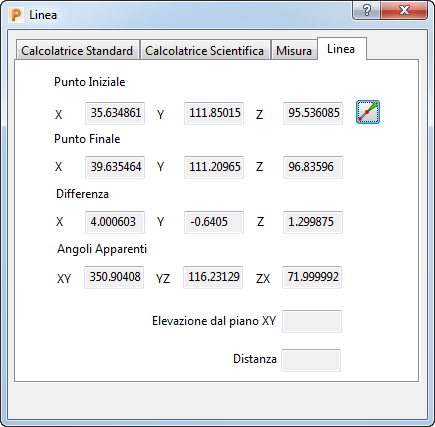 Differenza — Visualizza la differenza in X, Y e Z tra il Punto iniziale e il Punto finale.