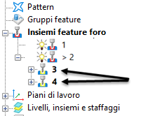 Nota: Le feature foro selezionate sono evidenziate in giallo nella finestra grafica ed in Explorer.