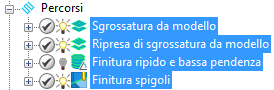 - Selezionare i percorsi utensile per i quali si vuole modificare la Velocità in affondamento.