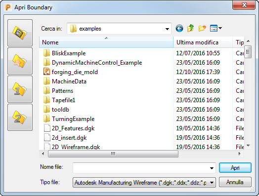 Usare l'elemento Importa per inserire un file .dgk o .pic nella boundary attiva.