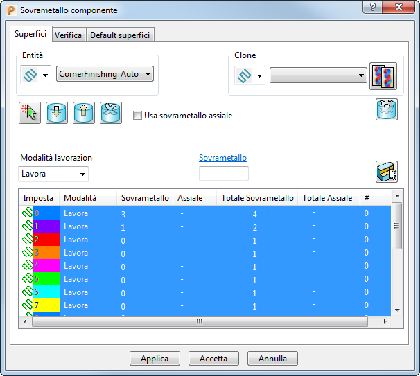 Usa sovrametallo assiale — Selezionare questa opzione per selezionare valori di Sovrametallo radiale e Assiale distinti. Quando deselezionato, è possibile selezionare soltanto un singolo Sovrametallo.