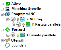 Qualsiasi percorso utensile creato viene automaticamente aggiunto al programma NC attivo. Disattivare il programma NC per fare in modo che PowerMill smetta di aggiungere i percorsi utensile al programma NC per default.