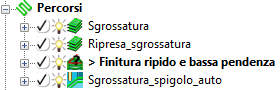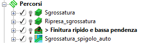 Utilizzare il menu Percorsi per creare e gestire i percorsi utensile nel progetto corrente.
