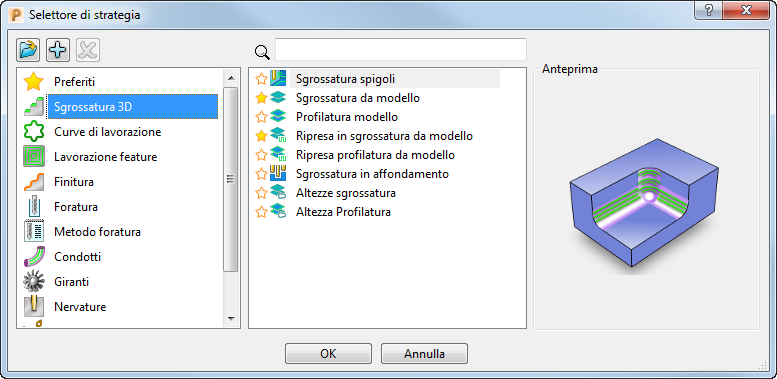 ) alla/dalla cartella Preferiti. PowerMill visualizza inoltre le strategie preferite nella galleria Preferiti della scheda Home.