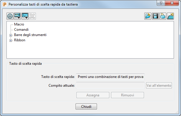 Assegna — Fare clic per assegnare un tasto di scelta rapida ad un elemento.