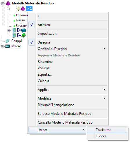 Per creare un menu personalizzato di entità PowerMill, partendo dal menu contestuale di qualsiasi entità, selezionare Utente per visualizzare il comando del menu personalizzato.