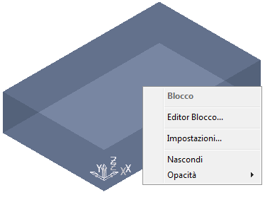 Per accedere al menu contestuale del blocco fare clic con il tasto destro del mouse sul blocco nell'area grafica.